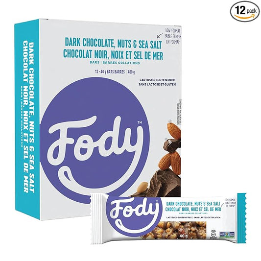 Fody Foods Snack Bars, Dark Chocolate Nuts & Sea Salt, 1.41 Oz (Pack of 12), 5g Protein, Low FODMAP, Gut & IBS Friendly, Vegan, Lactose Free, Non-GMO, Gluten Free