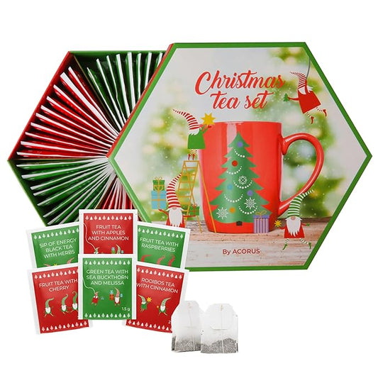 ACORUS Christmas Tea Set, Herbal Fruit Tea Gift Set, 60 Assorted Tea Bags Variety Pack, Herbal Tea and Fruit Tea Sampler, Specialty Tea Bags Individually Wrapped, Tea Gifts for Women, Men, Tea Lovers