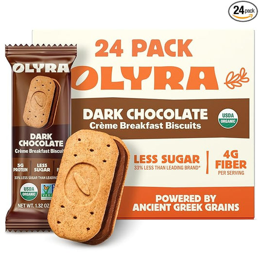 Olyra Dark Chocolate Sandwich Breakfast Biscuits, Healthy Snacks for Adults and Kids, Low Sugar, Organic Vegan Cookies, Office Snacks, USDA Certified, Non GMO 24 Packs