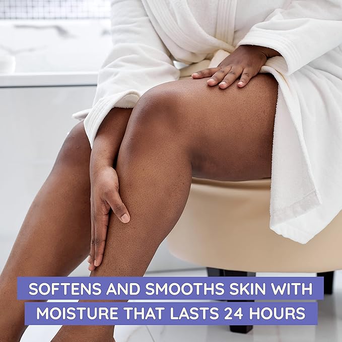 - Features the calming scent of lavender to help calm and relax you as you massage lotion into skin. This non-greasy moisturizing body lotion also has prebiotic oat that intensely moisturizes for 24 hours and leaves skin soft and smooth all day long