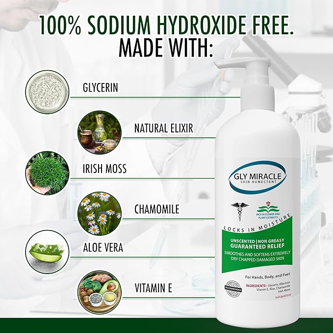 - INFORMED SKINCARE CHOICE: Elevate your skincare routine with GLY MIRACLE, a non-stinging formula that prioritizes your skin's health and well-being. Free of sodium hydroxide and other harsh irritants, our gentle yet effective moisturizer provides intense hydration without causing stinging or burning, making it perfect for sensitive, irritated skin.