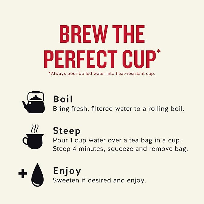 - Your Perfect Cup: Steep the tea bag in hot water for 4-6 minutes and remove the bag.