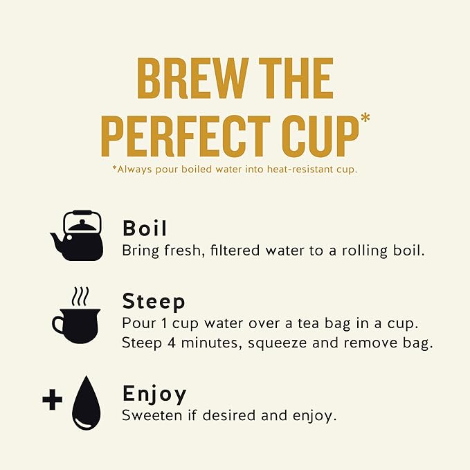 - MINIMAL PACKAGING: We use tea bags without strings, tags, or staples to divert waste from landfills. Plus, we print on 100% recycled paperboard (35% post-consumer content)