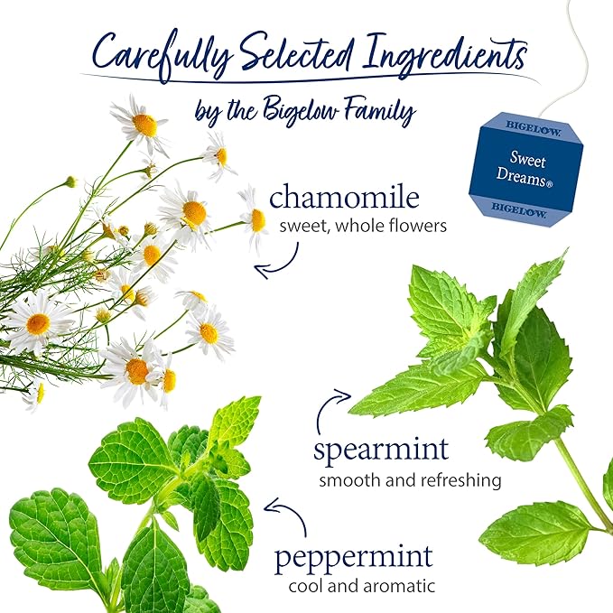 - For A Night Of Sweet Dreams: Let this relaxing herbal tea blend soothe you off to sleep. Made with sweet chamomile flowers and mint herbs known for their calming properties as well as their delicious flavor, this tea is a classic bedtime tea