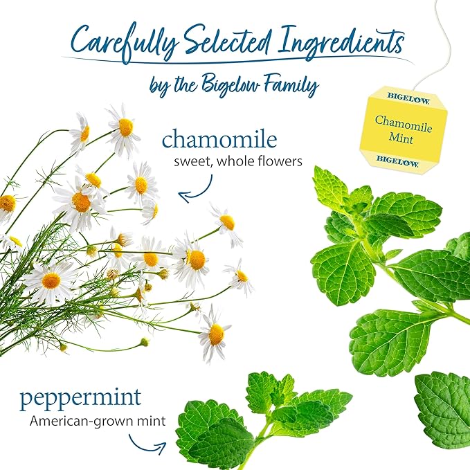 - Soothing Chamomile: 120 tea bags of Bigelow Chamomile Mint Herbal Tea, delicious comforting blend that combines soothing chamomile with refreshing peppermint