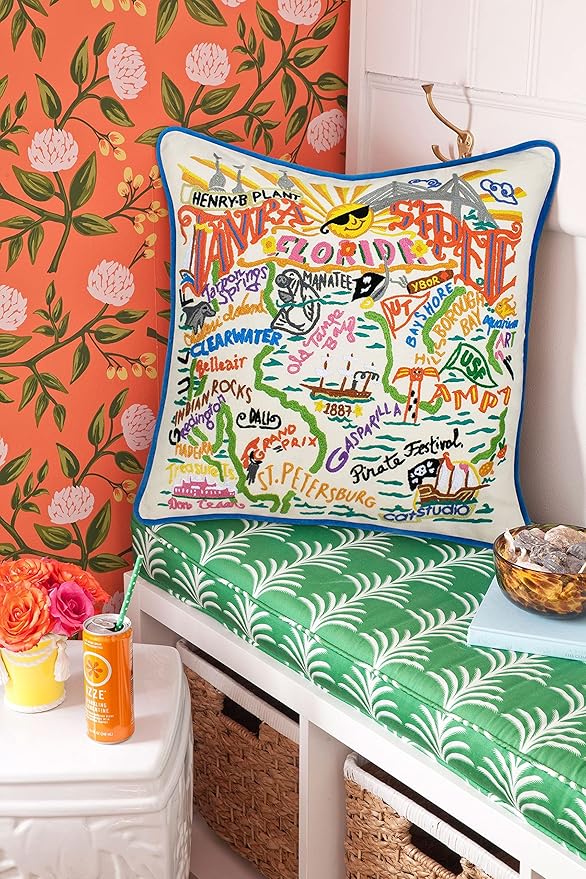Catstudio Tampa & St. Pete Embroidered Decorative Throw Pillow