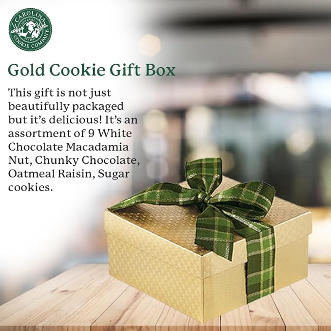 Gold Cookie Gift Box: Fresh Baked Gourmet Assortment - 9 Delicious Cookies for Birthdays, Thank You, Corporate Gifts