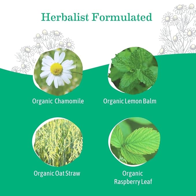 - SOOTHING AND SERENITY: Organic lemon balm, chamomile and oatstraw are happily blended with a hint of red raspberry leaf and orange peel for a nice, bright citrusy vibe.