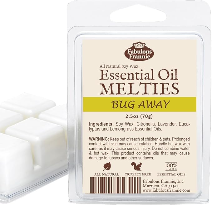 Fabulous Frannie Bug Away Pure & Natural Soy Candle Meltie/Tart/Melt Made with Pure Citronella, Lavender and Lemongrass Essential Oils 2.5oz