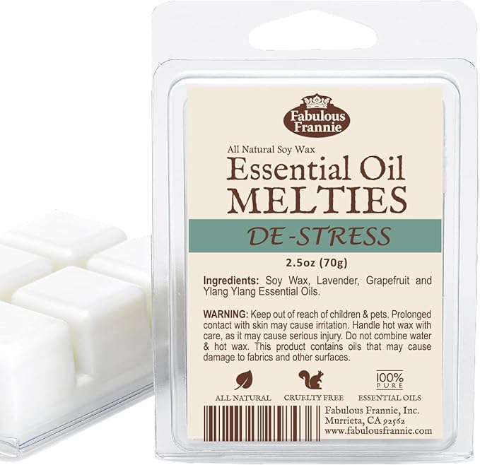 Fabulous Frannie De-Stress Pure & Natural Soy Candle Meltie/Tart/Melts Made with Pure Grapefruit, Ylang Ylang and Lavender Essential Oils 2.5oz
