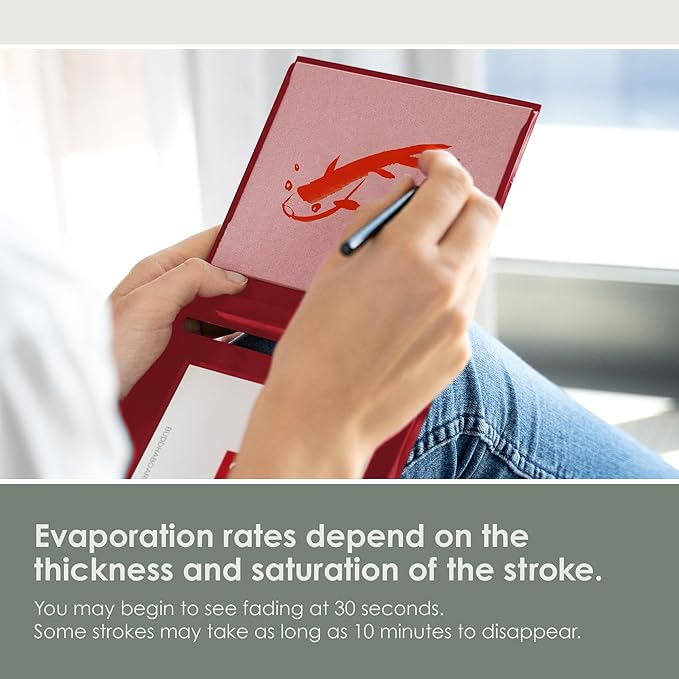 - Simply draw on the surface with water. The water evaporates leaving you with a clean slate, ready to create all over again!