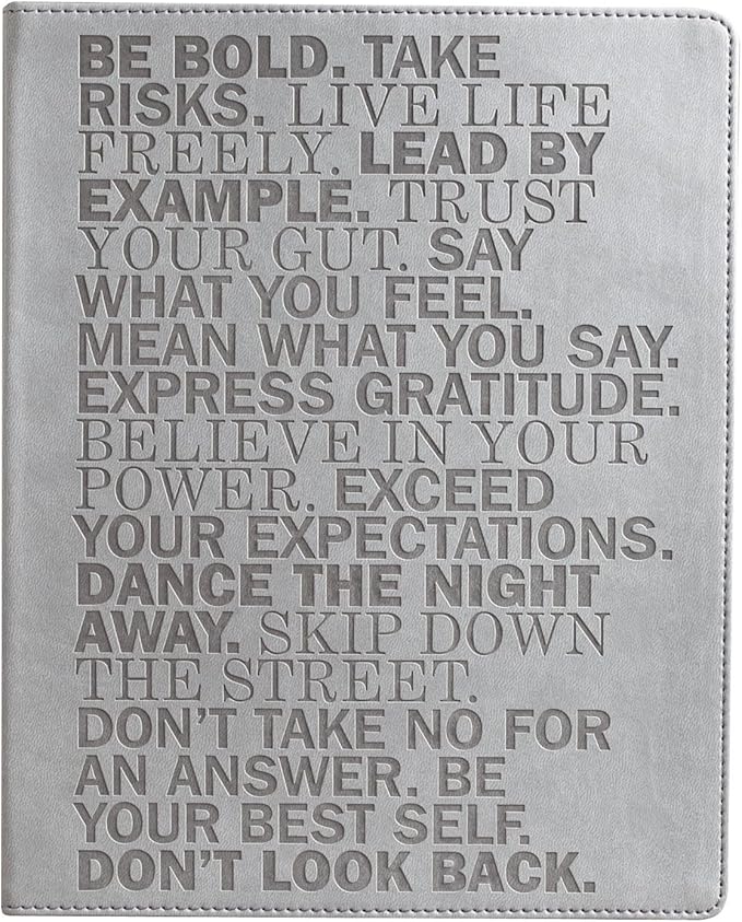 - The 8 by 10 journal features a range of colorful, pastel, and vibrant combinations, different textures and premium materials, and inspirational quotes that will cheer you up and help with self-reflection and productivity. Its round corners and sturdy hardcover make this cute journal a great companion for everyday life. Comfortable to hold and to carry around, just throw it in a bag or backpack, and you’re good to go