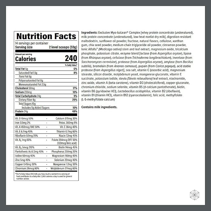 - Supports lean muscle and satiety with 24g high‑quality protein plus a balanced macro profile for convenient meal replacement