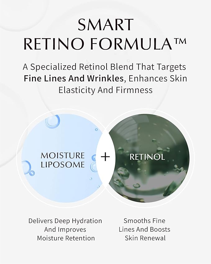 - ULTIMATE ANTI-AGING SOLUTION – Smart Retino Formula targets wrinkles and fine lines, while moisture liposome ensures deep hydration. Retinol promotes skin renewal, and hydroxyproline boosts collagen for improved resilience and elasticity.
