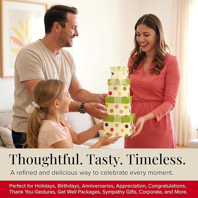 - ELEGANT READY-TO-GIFT PRESENTATION: Impress your recipients with a beautifully designed basket tower featuring premium packaging, coordinated designs, and decorative ribbons - no extra wrapping needed. Perfect for birthdays, holidays, family gatherings, and celebrations where presentation matters most.