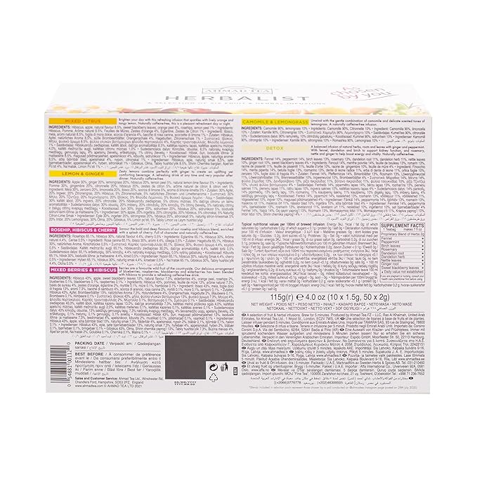 - BREWING YOUR TEA – The Herbalist box contains 10 foil-enveloped teabags of each variety (Camomile & Lemongrass, Mixed Citrus, Rosehip, Hibiscus & Cherry, Detox, Lemon & Ginger, Mixed Berries & Hibiscus; 60 teabags total). Steep according to the recommended time on each pack. Perfect for serving hot or iced.