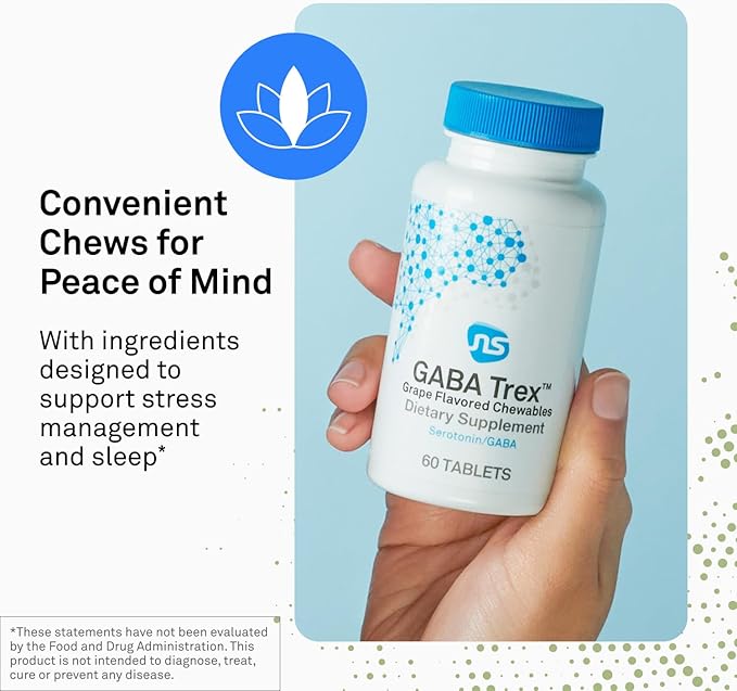 Neuorscience GABA Trex L Theanine Supplement - Calm Aid for Daytime Stress Support & Evening Relaxation - Chewable Grape-Flavored Tablets - Vegan & Non-GMO (60 Tablets)