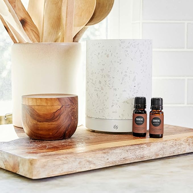 - BLENDS WELL WITH- Turmeric essential oil blends well with other spicy and woodsy oils like Ginger, Black Pepper, and Cedarwood, creating a warm and earthy aroma often utilized in aromatherapy and skincare products. It can also be paired with citrus oils such as Lemon or Bergamot for a bright and invigorating note in its fragrance profile.
