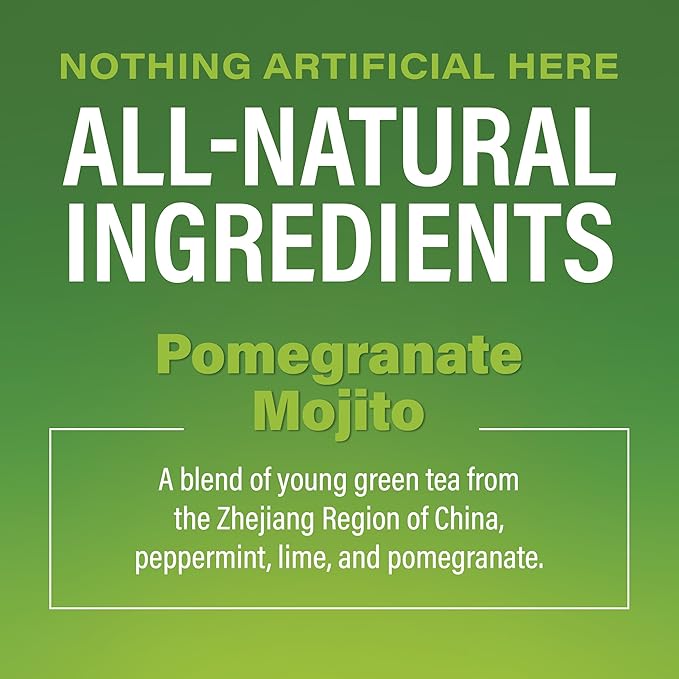 - PREMIUM NON-GMO INGREDIENTS: Young Hyson Chinese Green Tea, Peppermint, Pomegranate and Lime Flavor, Natural Caffeine From Tea. Comes with 30-day Satisfaction Guarantee