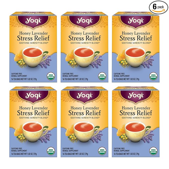 - Chamomile Lavender Tea: Relax and breathe in the enchanting aroma of Yogi Honey Lavender Stress Relief tea; this Lavender tea is a soothing blend that helps your body and mind to unwind