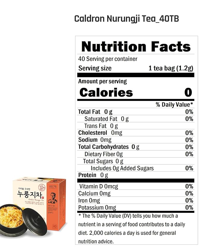 - [Perfect Blending] Blended with high-quality ingredients. Nurungji tea made from slowly dried rice has a savory scent and taste, and you can drink is as a substitute for water. Each tea bag contains 50% crust of overcooked rice, 25% roated brown rice, 10% solomon's seal and 15% corn. All ingredients from South Korea. Enjoy soft and authenthic taste of the ingredients. No artificial additives and caffeine-free. Perfect alternative for water or coffee.