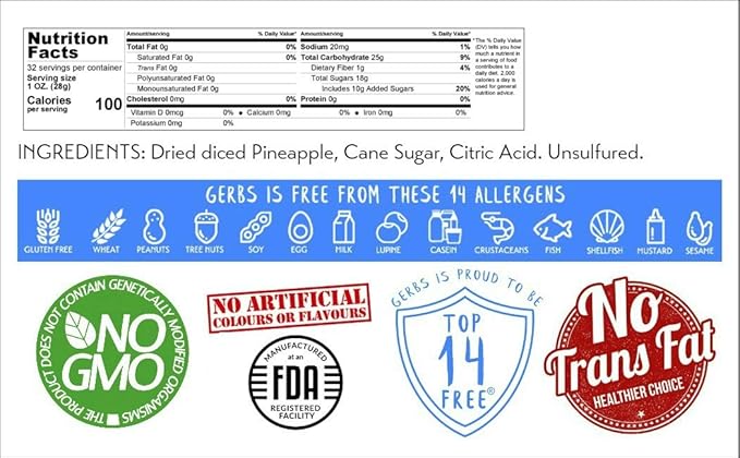 Gerbs Dried Pineapple Cubes, 2 LBS - Preservative Free & Unsulfured - Top 14 Food Allergy Free & Non GMO - Product of Thailand