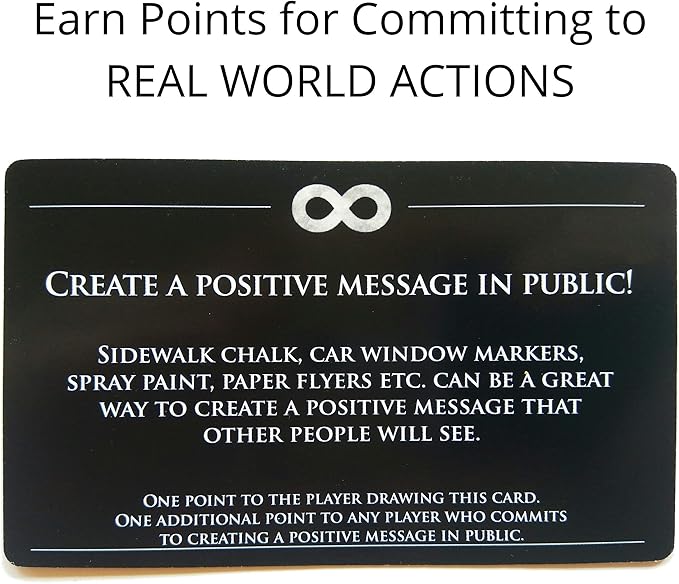 - Real World Action & Accountability - Partner with other players to earn points for making commitments & random acts of kindness in the real world. Your player sheet acts as a goal journal to record your progress