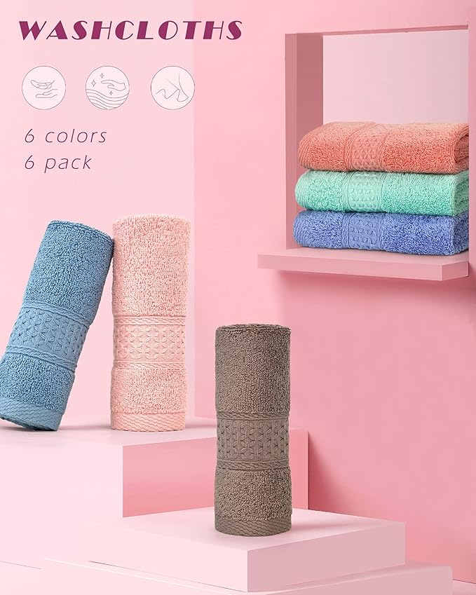 - 6-pack 6 Colors: These bath cloths can be distinguished easily by the vivid colors that is great for every family members and they won’t mix up the washcloth again