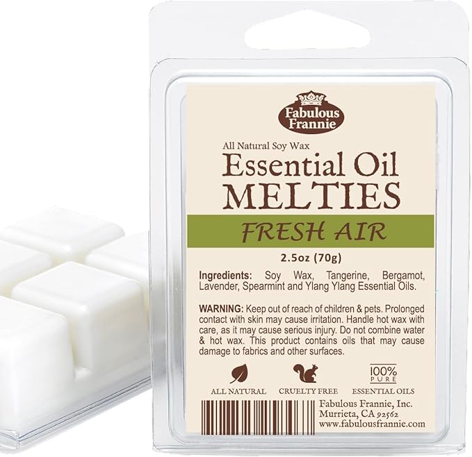 Fabulous Frannie Fresh Air Pure & Natural Soy Candle Meltie/Tart/Melts Made with Pure Tangerine, Bergamot, Ylang Ylang and Spearmint Essential Oils 2.5oz