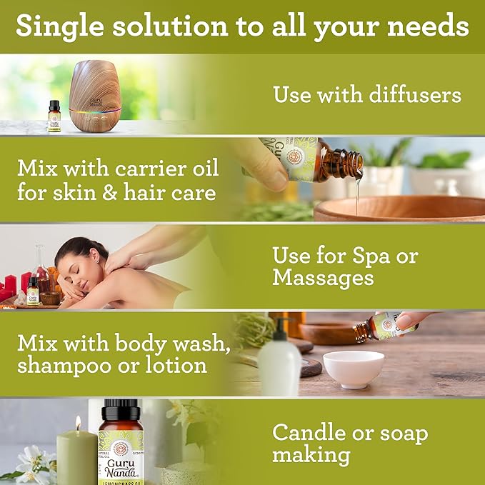 - COMFORTING AROMATHERAPY: Use with your favorite GuruNanda Essential Oil Diffuser to create an aromatic paradise at home, office, or while traveling. Create your own custom blend with a carrier oil for a refreshing massage.