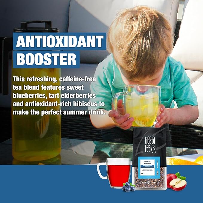 - PREMIUM LOOSE LEAF TEA BLEND: Tiesta Tea’s Blueberry Wild Child is a high-quality, loose leaf blend of the finest ingredients, including blueberries, elderberries, apple pieces, and cornflowers. Experience a rich, full-bodied flavor with every cup, free from the limitations of tea bags.