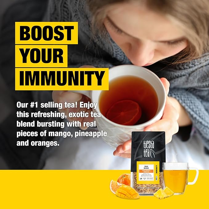 - PREMIUM LOOSE LEAF HERBAL TEA: Tiesta Tea delivers a high-quality, caffeine-free herbal tea experience. Crafted with a vibrant blend of mango, hibiscus, and orange, our loose leaf tea provides an authentic, flavorful taste—free from the limitations of tea bags.