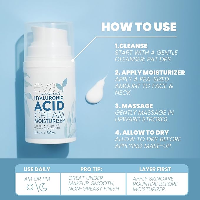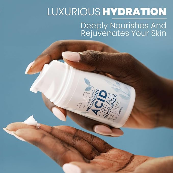 Eva Naturals Hyaluronic Acid Face Cream – Deep Hydration & Firming Moisturizer with Retinol, Vitamin C & Q10 for Anti-Aging, Wrinkle Reduction & Collagen Support – Day & Night Facial Cream - 1.7 Fl Oz
