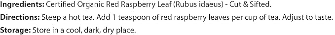 - IMPORTED FROM BULGARIA - This bag contains certified organic, cut and sifted red raspberry leaf from Bulgaria.