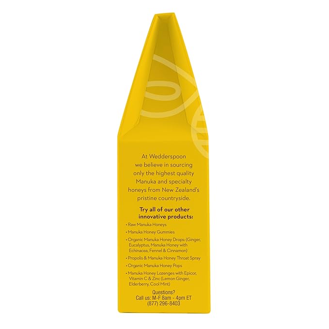 - ORGANIC COUGH DROPS: Wedderspoon Organic Manuka Honey with Lemon Drops include Bee Propolis which promotes immune health; Honey is excellent for dry throats, and they taste great; 20 drops