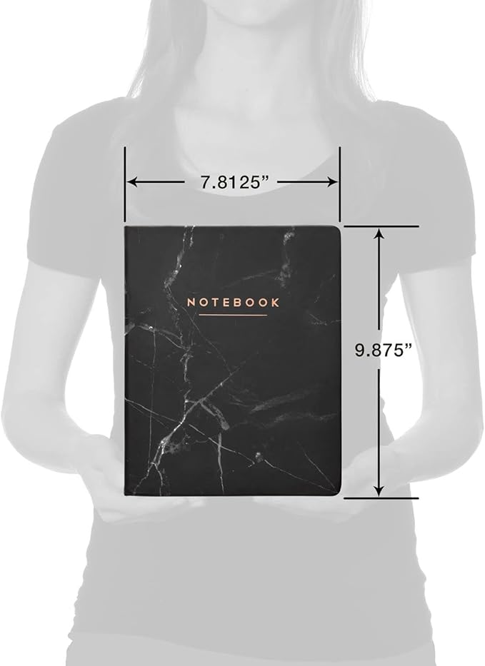 WORLD TRAVELER Eccolo Large Lined Journal Notebook, Hardbound Cover, Writing Journal, 256 Ruled White Pages, Ribbon Bookmark, Lay Flat, Desk Size for Work or School, Black Marble (8x10 inches)