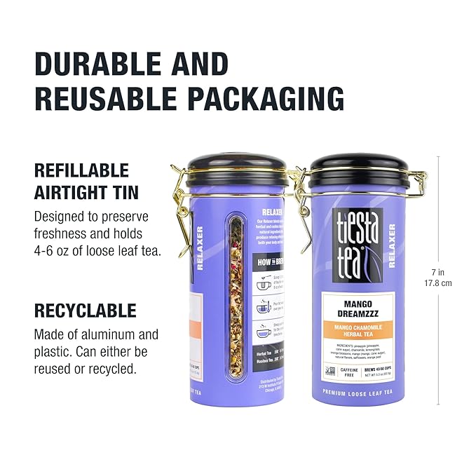 - VERSATILE BREW FOR ANY OCCASION: Enjoy the versatility of this tea, whether brewed hot for a warming treat or served iced for a cool, refreshing beverage. Steep 1.5 tsp per 8 oz of water for 5-7 minutes and enjoy the sweet, tropical notes of mango and chamomile.