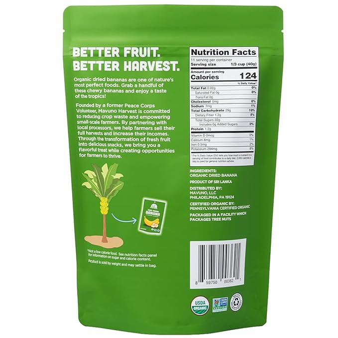 - ALL NATURAL - Mavuno Harvest Dried Banana Chips are USDA Organic, and completely natural, with no funky additives you can’t pronounce! Vegan, Gluten free, Non GMO Project Verified, and with no added sugar or preservatives, these Organic Banana Chips are a natural snack that will leave you feeling full, refreshed and happy.