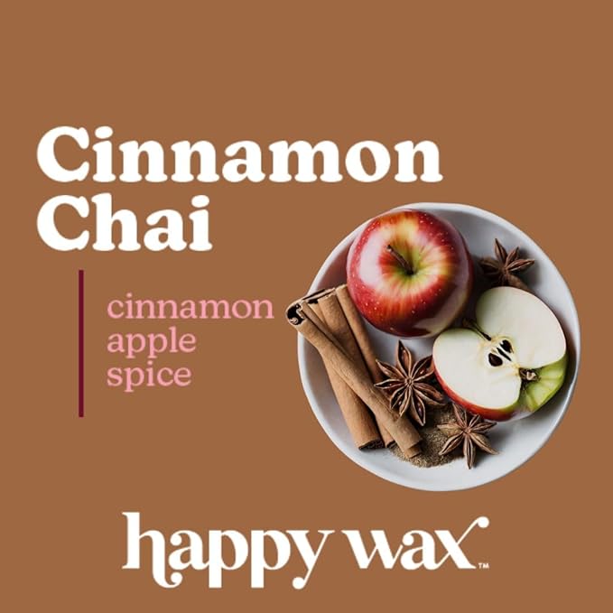 - CINNAMON CHAI FALL SCENTED WAX MELTS: Slightly sweet, a little spicy, and 100% cozy, our Happy Wax Cinnamon Chai wax melts will transport you to your favorite coffee shop in fall! Perfect for cinnamon lovers looking for a little something "extra."