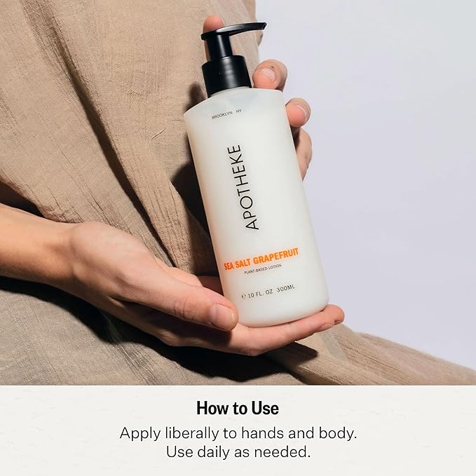 - Nourishing Hand & Body Lotion: Experience soft, hydrated skin with Sea Salt Grapefruit lotion, a nourishing and fast-absorbing moisturizer from APOTHEKE. Made with ingredients that hydrate while lightly scenting the skin. Each bottle is 10 fl oz and measures 2.5 x 6.5 inches.
