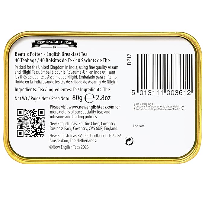 New English Teas Peter Rabbit Tea Tin with 40 English Breakfast Teabags, Beatrix Potter