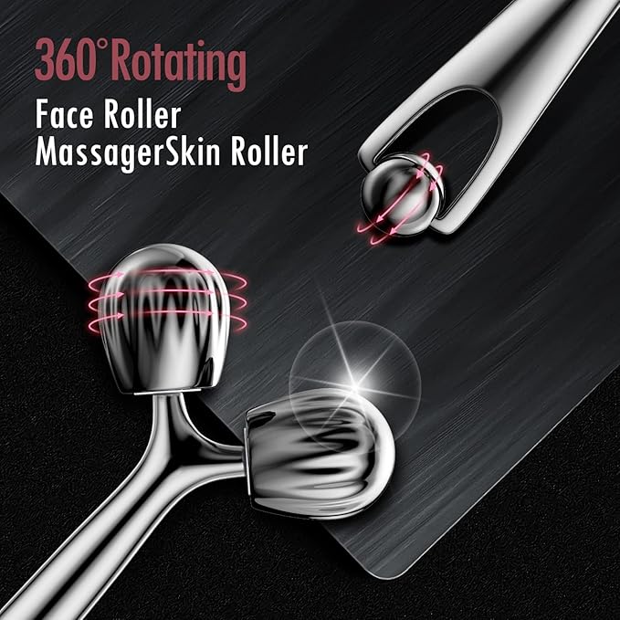 - THE ULTIMATE DEVICE FOR ALL YOUR SKINCARE PRODUCTS - The face roller massager can rotate by 360 degree fit all over body skin. The round shape small roller ball at the end of the facial roller is good for your eyes skin and look healthier and younger.