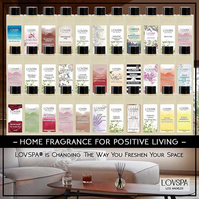 LOVSPA Reed Diffuser Set, Refresh Sicilian Blood Orange Scented Oil Diffuser with Sticks, Home Fragrance Accessories for Bathroom Shelf Decor, Aroma Diffusers for Home or Office Desk, USA Made