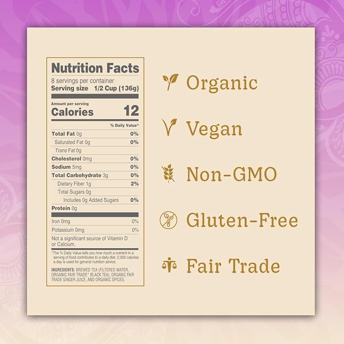 - ππ«π£ππ₯π§ππ¬ ππ₯ππͺππ: Enjoy the same rich, handcrafted flavor of organic fresh-pressed ginger, black tea, fresh-pressed ginger, and fiery masala spicesβnow in a sugar-free chai tea concentrate! Each 32oz carton makes 8 lattes, giving you a pure, unsweetened chai experience.