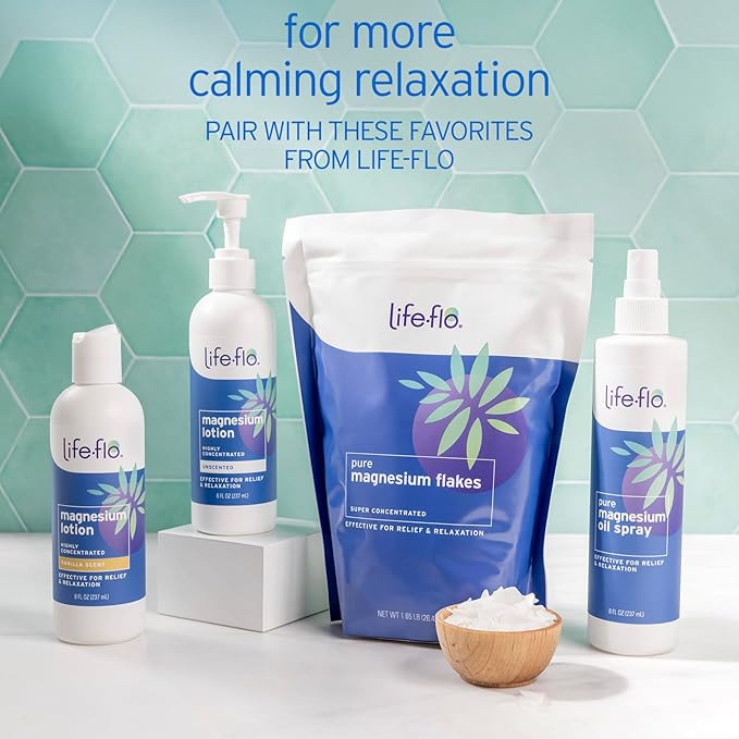 Life-flo Pure Magnesium Bath Flakes - Relaxing Bath Soak - Concentrated Magnesium Chloride Flakes from The Zechstein Seabed - Relief and Relaxation w/Ancient Trace Minerals - 60-Day Guarantee, 1.65lb