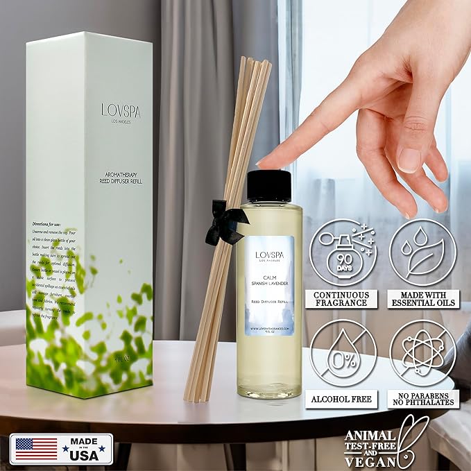 LOVSPA Calm Spanish Lavender Diffuser Oil - Luxury Essential Oils for Diffuser Refill & Air Freshener Room Spray - Long-Lasting & Natural Home Fragrance, Scented Oil for Diffusers, USA Made, 4oz