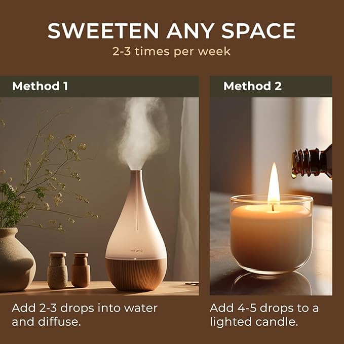 - Vanilla essential oil for diffuser. Vanilla oil for diffuser is popular in aromatherapy for its fragrance. Add vanilla diffuser oil to diffusers for home or use as a vanilla perfume oil to enjoy its sweet and lingering aroma.