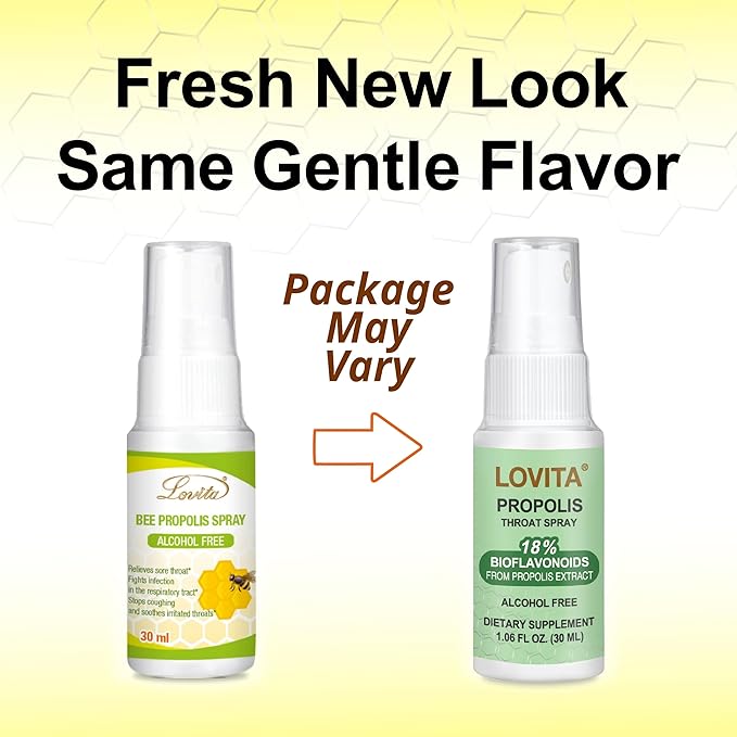 Lovita Bee Propolis Throat Spray, 18% Bioflavonoids, Alcohol-Free, Immune Support, Throat Soothing, Antioxidant, Gentle Taste, 1 Fl Oz (Pack of 1)