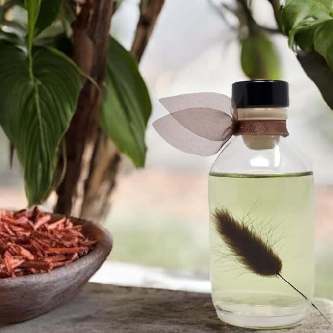 - SANTAL (SANDALWOOD) – earthy Sandalwood, Spiced Woods, Orange, and Golden Amber; in our Signature Apothecary Diffuser with a chocolate brown ribbon accent and soft bunny tails for a warm, rustic appeal; blends with deep brown interiors.