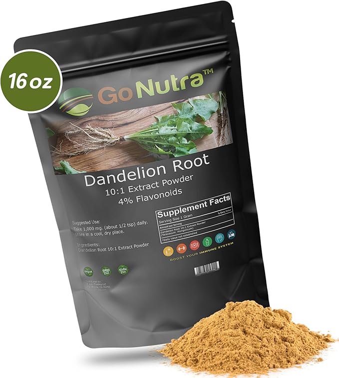Go Nutra Dandelion Root Powder for Tea, Coffee & Beverages | Concentrated 10:1 Dandelion Root Extract Powder, Caffeine Free | Antioxidants, Digestion & Immune System | Non-GMO, Vegan | 16 oz (1 lb)